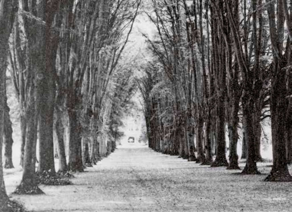 Eine stattliche vierreihige Lindenallee gewährte früher Ausblicke bis nach Bad Frankenhausen. Nach dem Bau des Neuen Schlosses bildete dieses Gebäude das Ende der Sichtachse. Die Reste der überalterten Allee wurden nach 1960 gerodet. (Foto vor 1945)