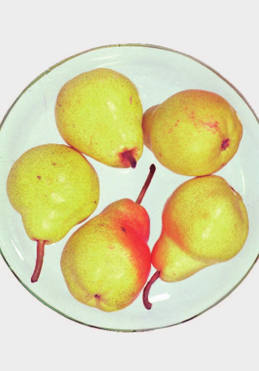 FRUCHTFLEISCH: Fast weiß, an der Luft kaum bräunend, zart, schmelzend, saftig, angenehm säuerlich, meist harmonisch süß und gut gewürzt.