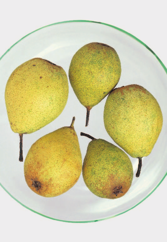 FRUCHTFLEISCH: Gelblichweiß, halbschmelzend bis schmelzend, saftig, vorherrschend süß, schwach bis kaum säuerlich, fein gewürzt.